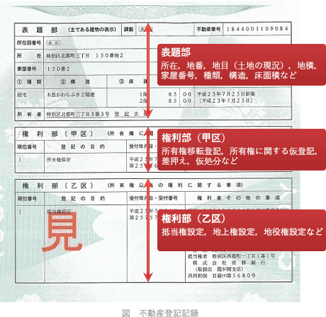 登記記録は、1筆の土地・1個の建物ごとに、土地や建物の物理的情報を記録する「表題部」と、権利に関する情報を記録する「権利部」に区分して作成されています。